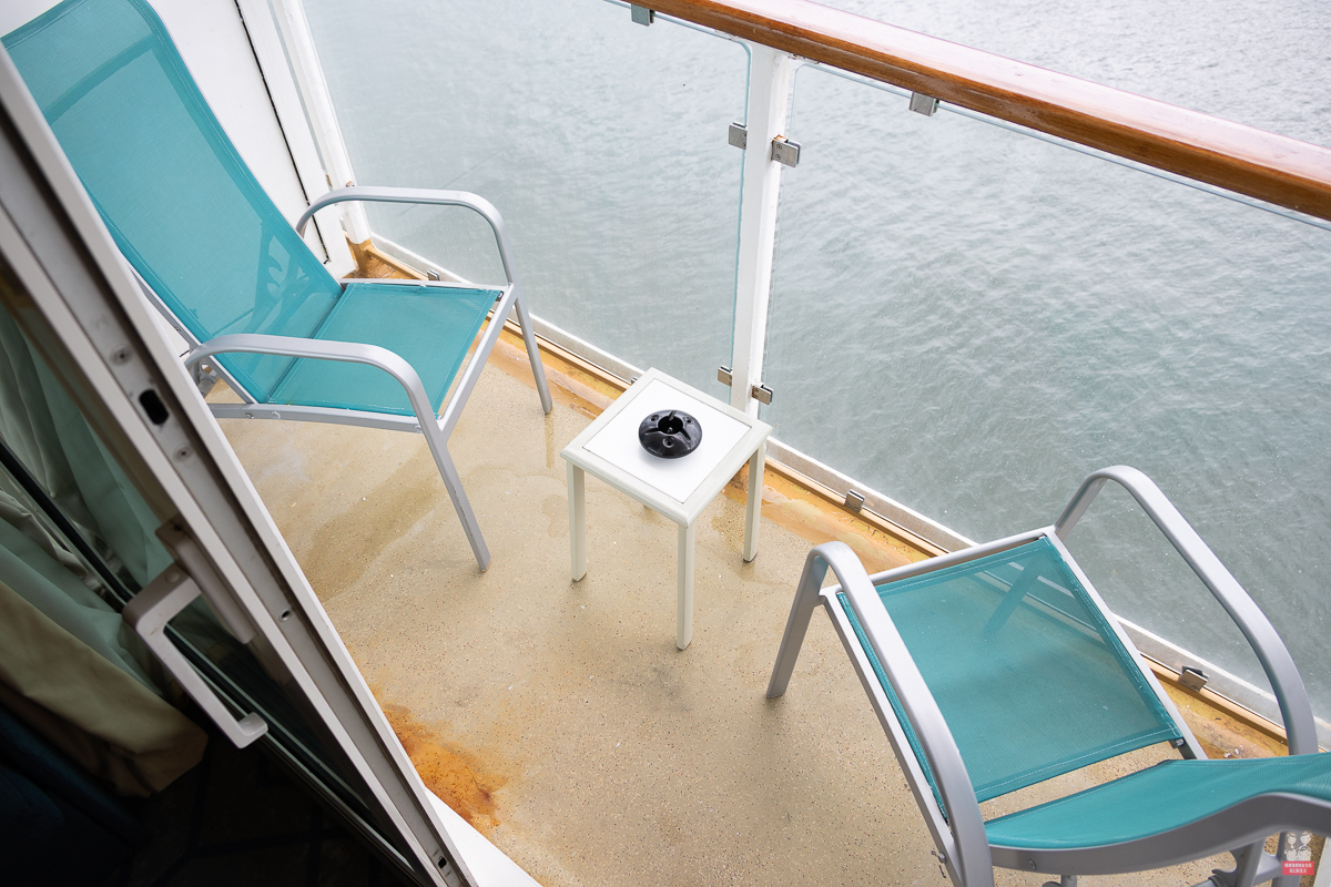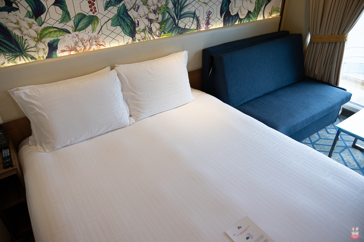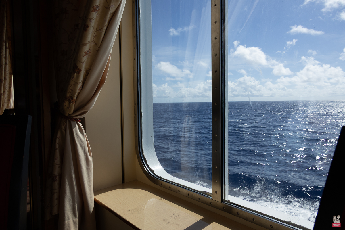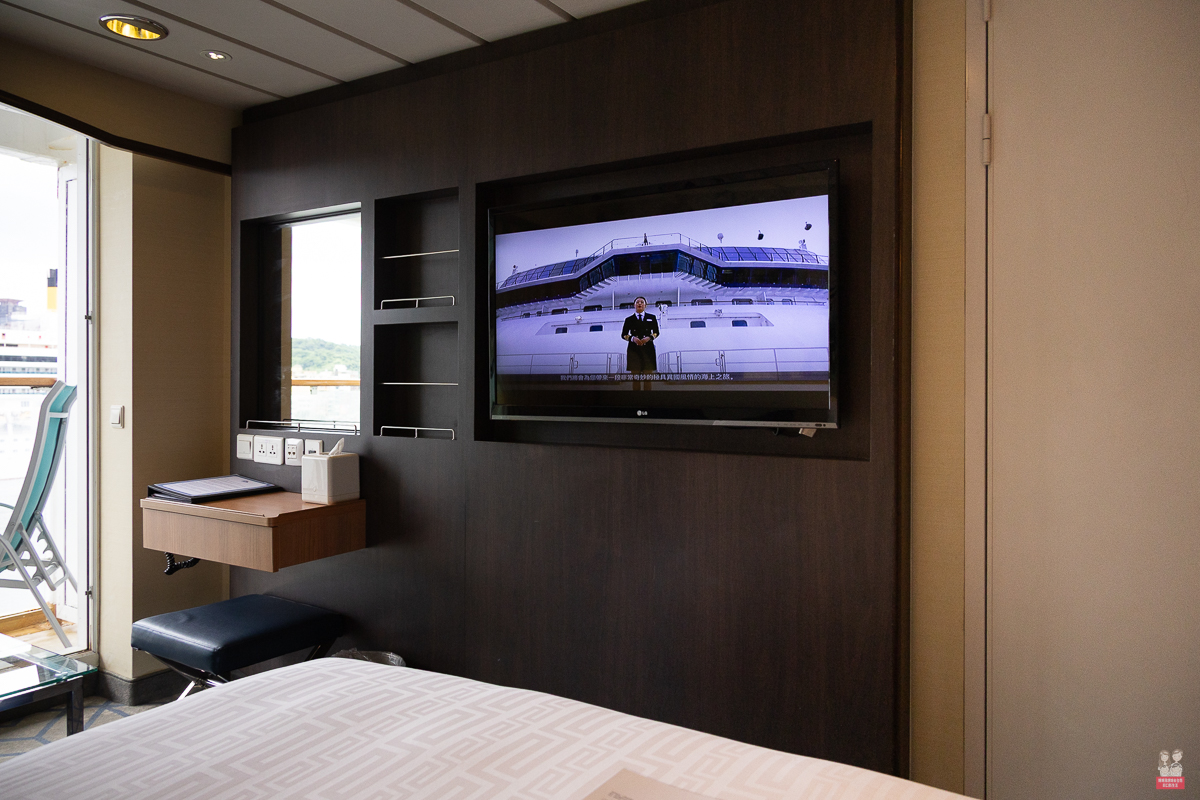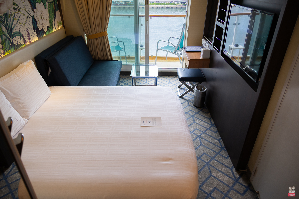 我們住的是這個房型,因為我們習慣問題喜歡有陽台的房型!在房間內就可以隨時看到大海~早起看日出,下午看夕陽!!再加上露臺防通常都會再贈送餐飲金~餐飲金可以用在船上的付費餐廳! - 皇宮套房以上